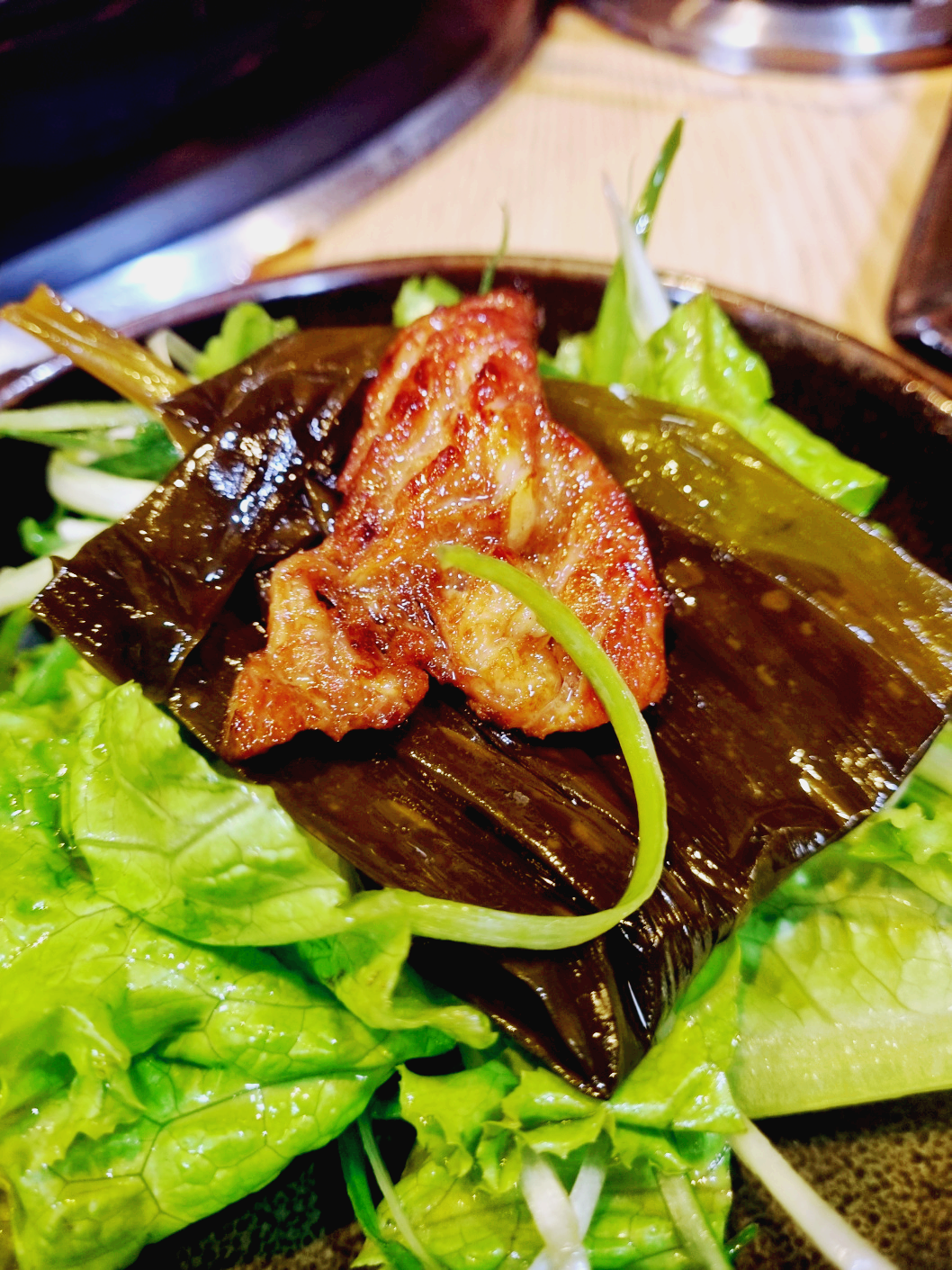 다시마쌈과, 해초와 함께 갈비를 싸 먹으면 소화에도 좋고 건강에도 좋습니다.