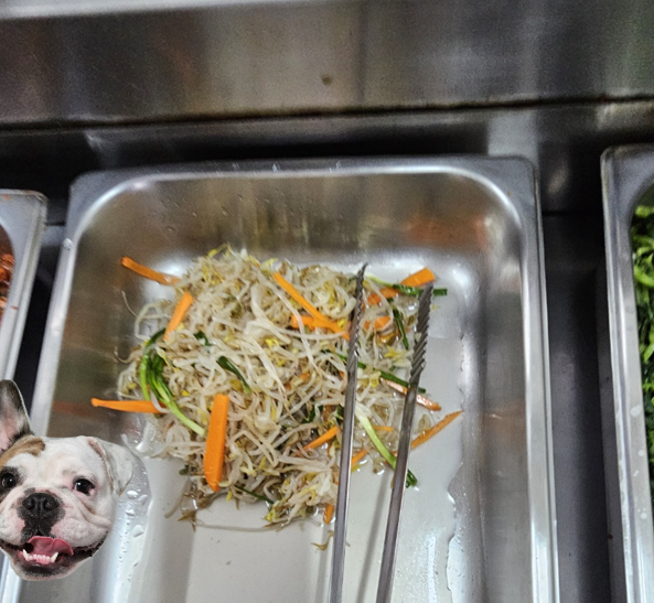 다 먹고 나오는데도 주방에서는 계속 새로운 음식들이 만들어지고 있었습니다. 방금 무쳐낸 무침은 다시 앉아서 한 그릇 더 먹게 만드는 비주얼입니다.