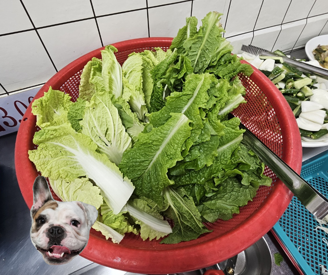 싱싱한 쌈채소입니다. 근처에 텃밭이 있는 것 같지도 않은데 진짜 신선했습니다.