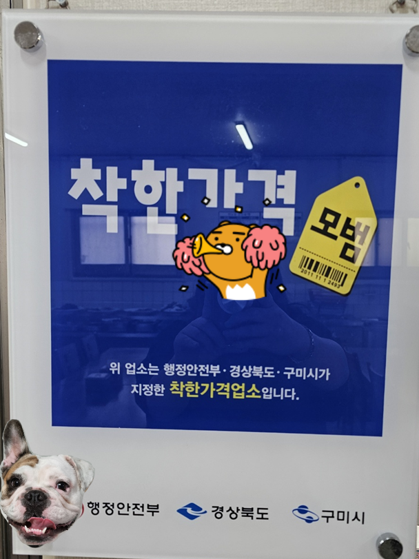 구미 기사식당 맛집 이곳은 행정안전부, 경상북도, 구미시가 지정한 착한 가격업소입니다.