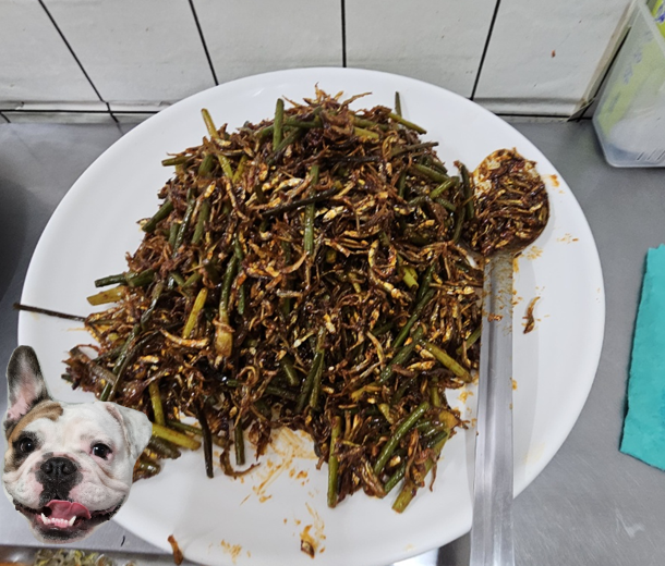 구미 할매기사식당 메뉴 마늘종과 중새우입니다.