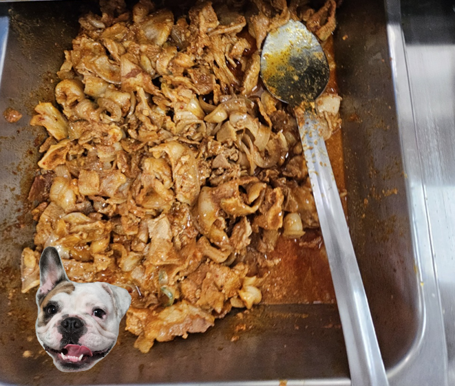 한국인은 고기가 빠지면 안 됩니다. 제육볶음입니다. 고기 누린내도 전혀 안 나고 너무 맛있었습니다.