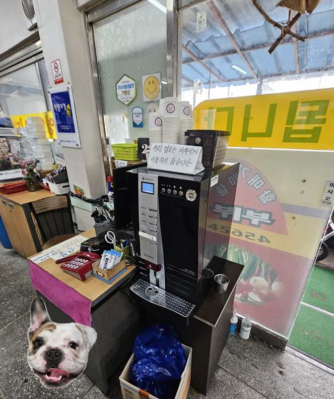 요즘 가게에 후식 커피가 없는 경우가 있는데, 구미 기사식당 맛집답게 후식 커피를 먹을 수 있는 기계도 있고, 직접 타먹을 수 있는 커피믹스도 있습니다.