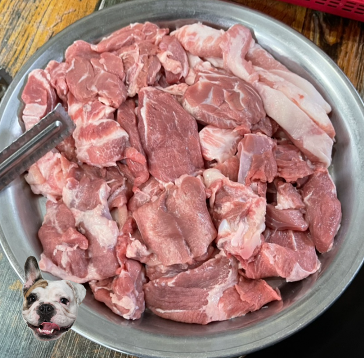 돼지머리 고기를 주문하면 두항정살, 볼살, 목덜미살, 돼지혀 각양각색 4가지 부위가 함께 나옵니다. 소량만 나오는 특수부위 두 항정살이 특히 맛있습니다. 항정살은 머리와 목을 연결하는 근육 부위입니다. 두(頭) 항정살은 말 그대로 머리 부위에서 생산되는 부위로 머리항정이라고도 합니다. 항정살과 두항정살의 차이점은 항정살의 기름부위는 매끈하고, 두항정살의 기름부위는 거칠고 지저분합니다. 두항정살은 고기와 지방층의 분리가 쉽게 되고, 항정살은 지방과 고기가 밀착하는 힘이 강해 잘 분리되지 않습니다. 개인적으로 일반 항정살보다 두항정살의 식감이 더 좋아 맛있게 느껴집니다.