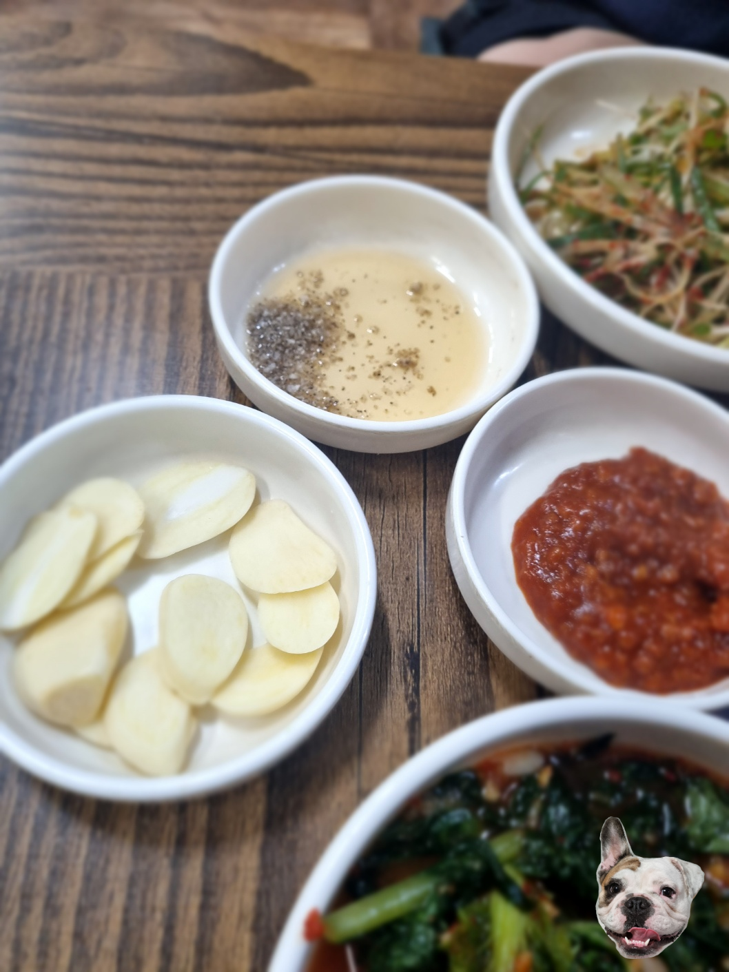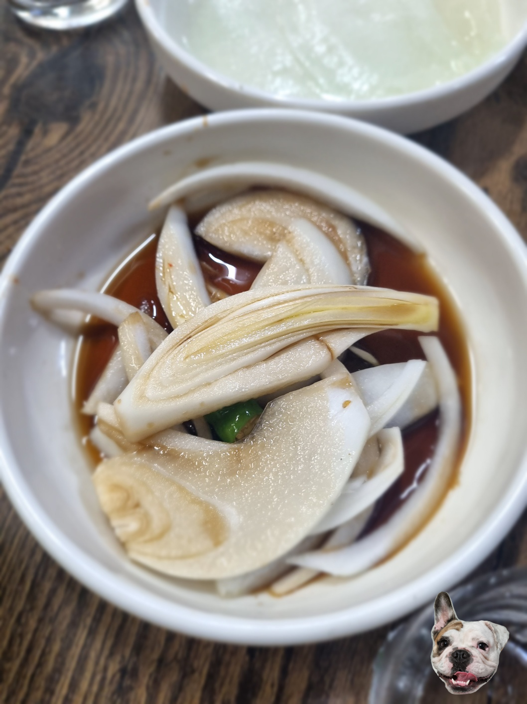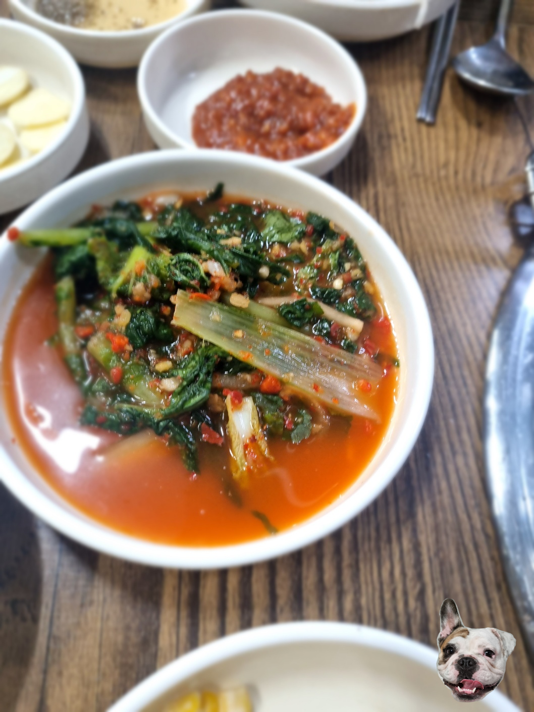 반찬 중에 물김치가 최고 맛있었습니다. 저 물김치만 있으면 뭐든 비벼먹기 좋겠다고 생각했었는데, 소면이랑 된장찌개와 먹어도 궁합이 좋습니다.
