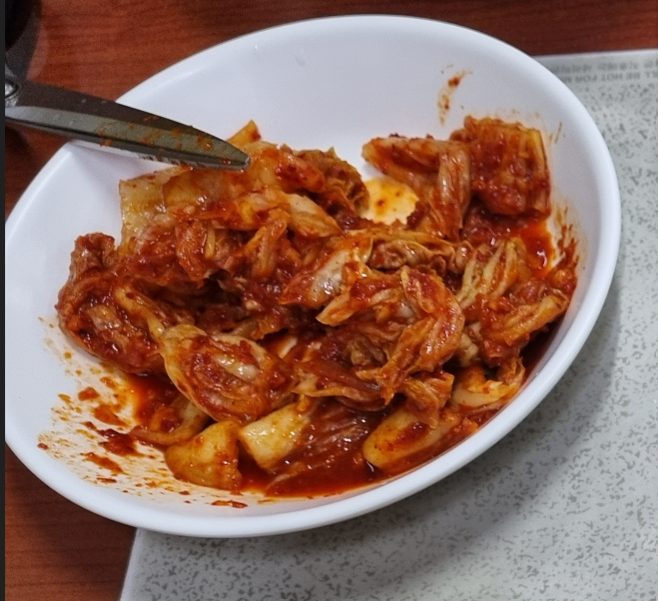 칼국수집의 기본은 김치입니다. 김치는 너무 맵지도 않고 깔끔한 맛을 가지고 있습니다. 칼국수에 곁들여 먹는 김치는 칼국수의 담백한 맛에 김치의 강렬한 맛이 어우러져 맛의 조화를 이룰 수 있습니다. 또한 김치의 감칠맛이 칼국수 국물에 얹어져서 더욱 풍부한 맛을 즐길 수 있습니다. 김치는 소화를 돕고, 비타민과 유산균이 풍부하여 칼국수와 함께 먹으면 소화도 잘되고 궁합이 좋습니다.