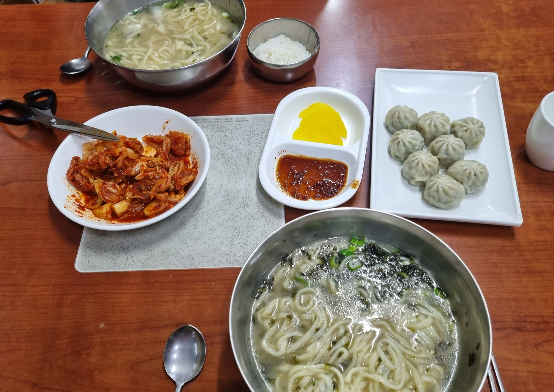 칼국수는 반찬은 기본 김치만 나옵니다. 만두를 시키면 단무지도 따로 챙겨주십니다. 김가루 넣은 깔끔한 국물맛입니다. 면을 다 먹고 나면 먹을 수 있는 밥이 따로 나옵니다. 칼국수는 한국의 전통적인 면요리 중 하나입니다. 예로부터 한국 사람들은 칼로 밀가루 반죽을 얇게 만들어 칼로 잘라서 끓은 물에 넣어서 먹었습니다. 칼국수는 보통 농촌 지역에서 주로 먹던 음식입니다. 시골에서 생산되는 밀가루와 간단한 재료로 만들 수 있습니다.