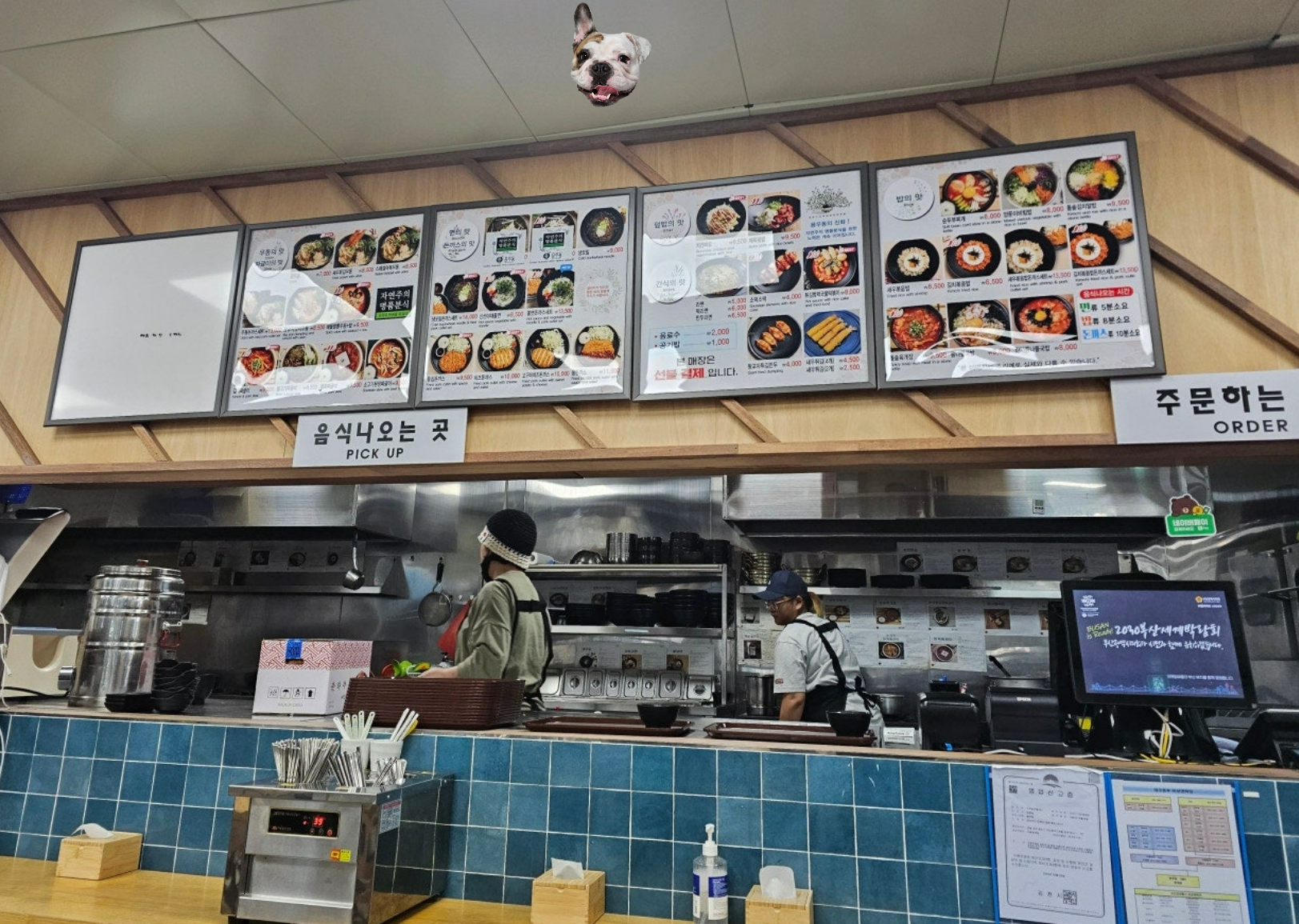 주방 위에 부분에는 한 번 더 메뉴를 확인할 수 있는 메뉴판이 존재합니다.