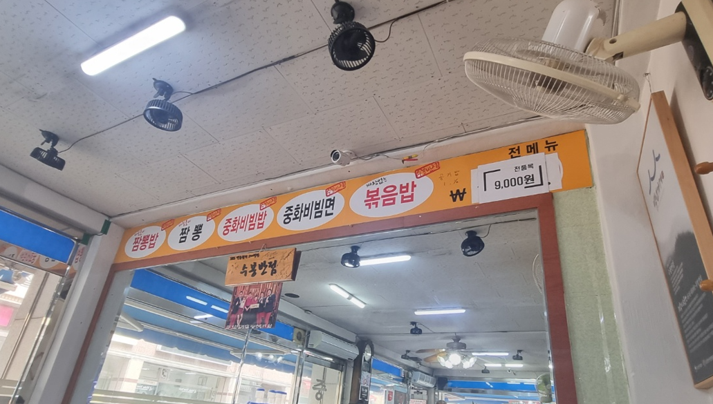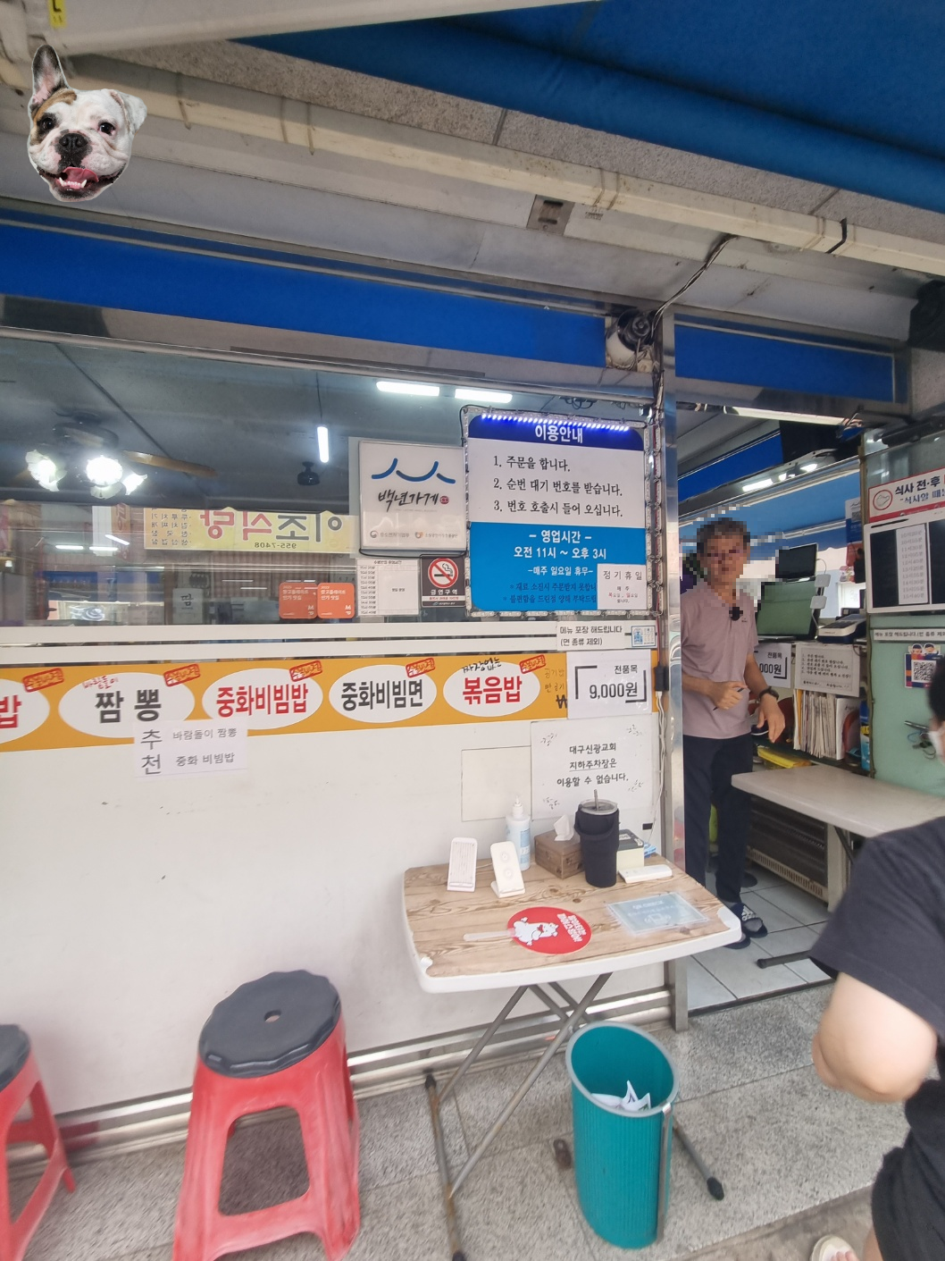 대구 맛집을 인증하듯이 수봉반점 앞에서는 웨이팅 시 기다릴 수 있는 의자가 있습니다. 더운 날에는 천막 끝에서 물이 안개처럼 뿌려져서 기다리는 동안보다 시원하게 기다릴 수 있었습니다.